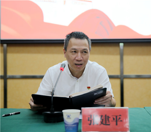 圖為集團(tuán)黨委副書記張建平傳達(dá)講話精神
