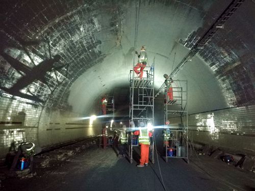 圖為隧道施工現(xiàn)場 目前,大溪嶺機電改造項目中的消防落管已完成總工程量的85%;土建項目中的涂料施工已完成總工程量的 95%、澆筑施工完成總工程量的75%、開槽裂縫完成總工程量的98%;機電項目中的新裝橋架支架完成了75%,照明燈具安裝完成了25%,拆除工作已經(jīng)基本完成。預計下階段將完成各項機電設備安裝工作及各種線纜的鋪設等工作。 馮曉潔