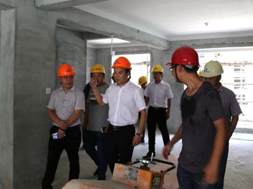 圖為集團(tuán)副總經(jīng)理羅小將在文鼎苑工地慰問(wèn)施工人員