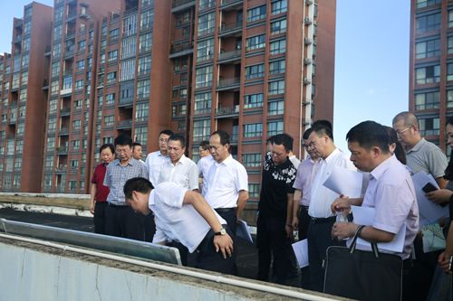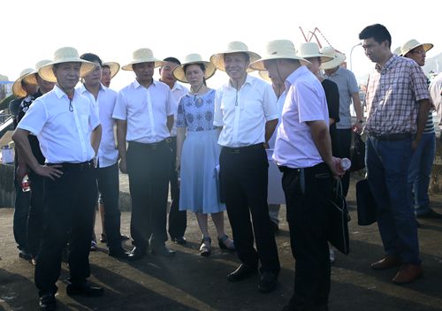 圖為臺州市副市長張加波在調(diào)研現(xiàn)場聽取相關(guān)匯報(bào)