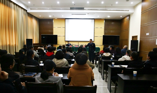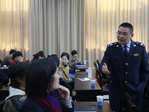 圖為臺州經(jīng)濟開發(fā)區(qū)稅務(wù)局局長柳東海在課上講話