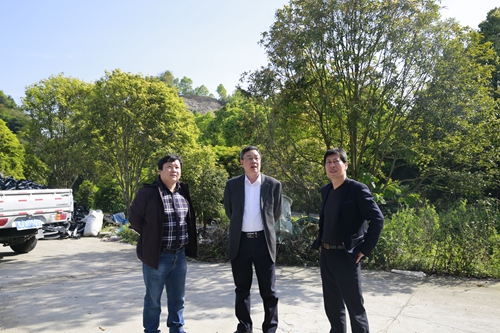 圖為公司領(lǐng)導(dǎo)陳文波在水花村考察停車區(qū)地塊