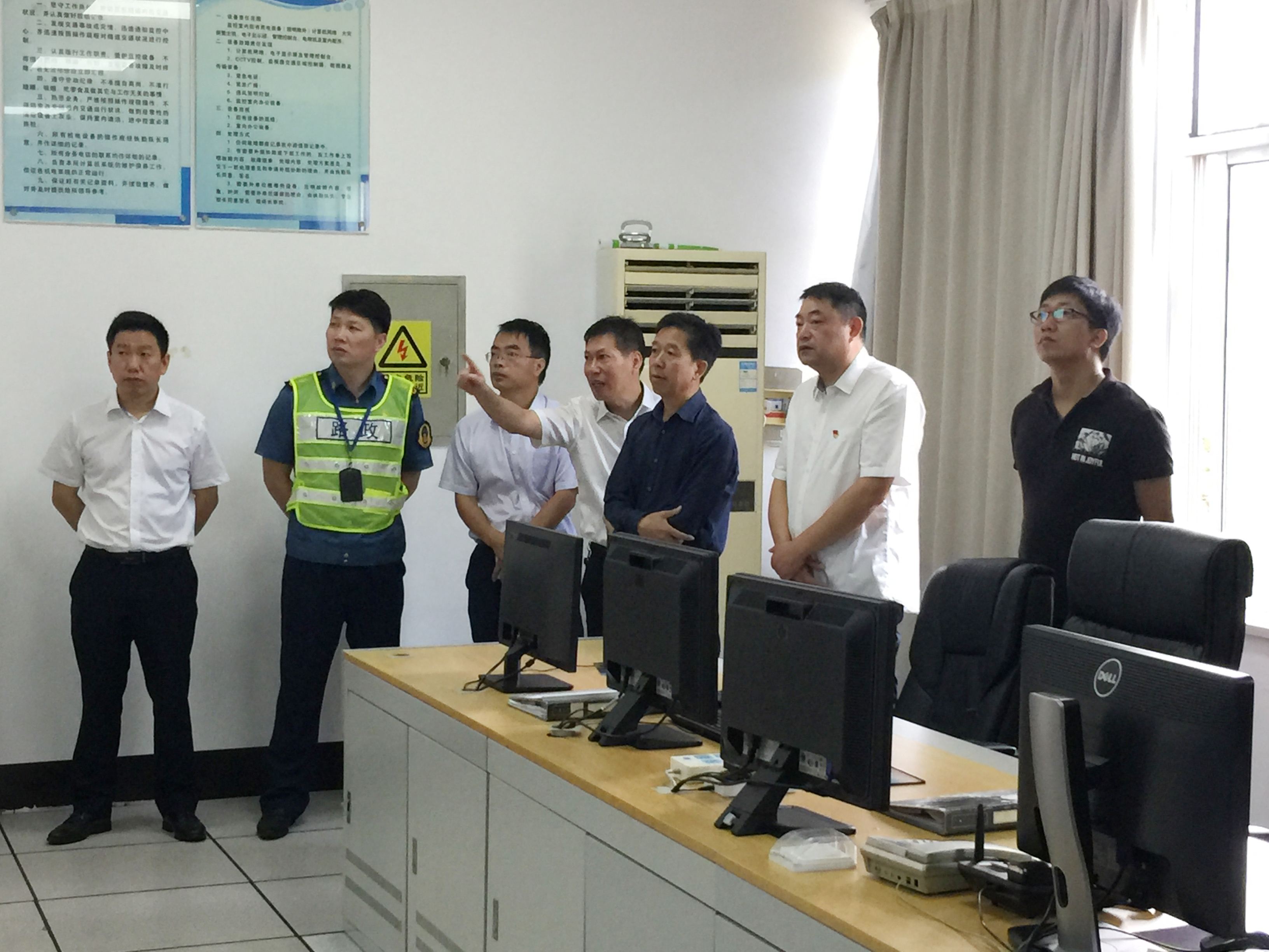 圖為市公路局副局長童桂正一行在黃土嶺隧道所檢查 檢查組一行先后來到黃土嶺、大溪嶺隧道所,在檢查隧道所中控室時,他們詳細(xì)了解隧道所監(jiān)控系統(tǒng)、火災(zāi)報警系統(tǒng)運行情況及突發(fā)事件應(yīng)急預(yù)案制定、應(yīng)急搶險人員設(shè)備物資配備情況等,并現(xiàn)場讓中控員大屏視頻切換、緊急廣播呼叫等演示,對集團安全管理工作給予充分肯定。江輝表示,集團橋梁隧道運營管理制度和應(yīng)急體系制度健全,并嚴(yán)格按照相關(guān)規(guī)定開展日常檢查和定期檢測工作。