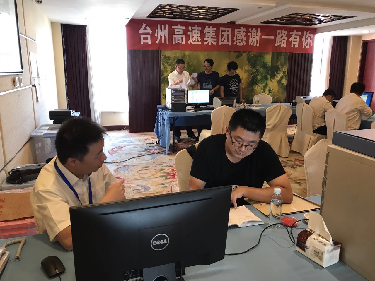 圖為工作人員與仙居縣國資局相關(guān)人員商量股權(quán)收購宣傳事宜