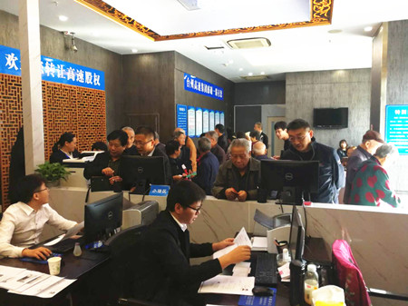 10月31日當(dāng)天,全市各收購點(diǎn)股東絡(luò)繹不絕,股東轉(zhuǎn)讓熱情高漲,場面尤其火爆。當(dāng)天下午,收購時(shí)間點(diǎn)過后,還有股東在收購點(diǎn)辦理轉(zhuǎn)讓手續(xù)。 李佩紅