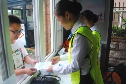 臺(tái)州收費(fèi)所志愿者參加“臺(tái)州志愿者服務(wù)亭”志愿活動(dòng) 6月15日上午,臺(tái)州收費(fèi)所志愿者服務(wù)隊(duì)參加由黃巖區(qū)團(tuán)委組織的“臺(tái)州志愿者服務(wù)亭”志愿服務(wù),隊(duì)員們積極主動(dòng)、文明有禮,為市民提供各類便民服務(wù)?! ?/p> 在位于黃巖區(qū)自力電影院對(duì)面的志愿服務(wù)亭里,臺(tái)州收費(fèi)所志愿者服務(wù)隊(duì)的成員們,一邊學(xué)習(xí)如何操作充氣設(shè)備,一邊熟悉服務(wù)內(nèi)容,并向市民發(fā)放《臺(tái)州市市民文明手冊(cè)》等。對(duì)于自己的志愿者服務(wù)工作,大家一臉自豪。就在隊(duì)員們分頭忙碌時(shí),來(lái)了兩位外地口音的路人,詢問(wèn)附近有沒(méi)有網(wǎng)吧。大家熱心指路,但這兩人還是一臉茫然,志愿者盧蒙莎就熱心地陪著兩人,穿過(guò)馬路,在一個(gè)巷子里的找到網(wǎng)吧。志愿者金愷,今天早班一下班,顧不得休息,就急著趕到了服務(wù)亭,加入志愿者服務(wù)的隊(duì)伍。