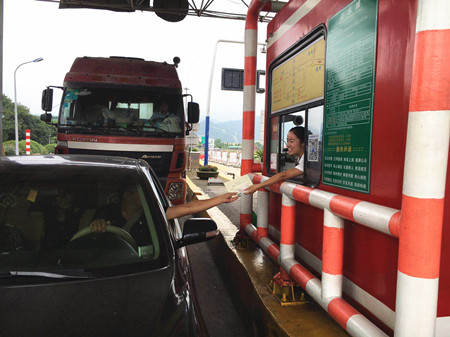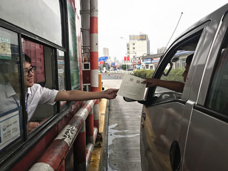 圖為臺州南收費所發(fā)放現(xiàn)場