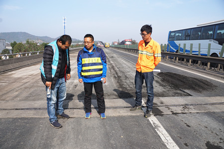 集團(tuán)路面養(yǎng)護(hù)工程量巨大,提升路況指數(shù)卻迫在眉睫,“黑劍”毅然全身心地投入到養(yǎng)護(hù)攻堅(jiān)隊(duì)伍中,自9月26日臨海南匝道路面施工啟動至今的兩個多月時間里,他放棄了所有休息日,每時每刻堅(jiān)守在路面專項(xiàng)施工現(xiàn)場,緊盯施工安全、質(zhì)量和進(jìn)度,一旦發(fā)現(xiàn)施工中存在的問題,便第一時間了解情況,做好分析判斷和協(xié)調(diào)工作。