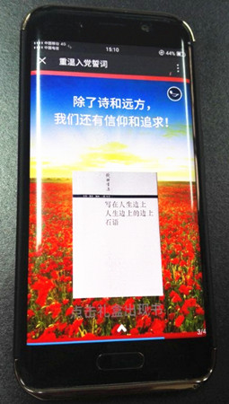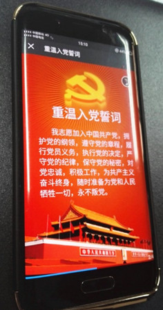 “凝視黨旗,我把奉獻(xiàn)刻心里;舉起右拳,我把責(zé)任刻心里;宣讀誓言見證我對黨的忠誠;這崇高的選擇是我終身的信仰----”點開微信圖文信息,伴隨著低沉渾厚的男聲詩朗誦,接收到信息的黨員們不由肅然起敬,仿佛置身當(dāng)年黨旗下宣誓的莊嚴(yán)時刻。