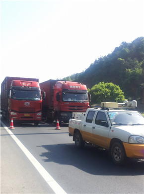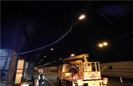 “南廣場有大貨車報(bào)警,據(jù)說發(fā)生事故……”4月17日凌晨3時(shí)55分,大溪嶺隧道中控室接到了臺(tái)州監(jiān)控中心緊急來電,執(zhí)勤隊(duì)立即驅(qū)車趕赴現(xiàn)場查勘。 巡邏車到達(dá)南廣場后,執(zhí)勤隊(duì)員發(fā)現(xiàn)溫向隧道進(jìn)洞1公里處,隧道頂部的攝像頭被撞損,造成電纜橋架移位,電纜下垂橫跨車道,存在嚴(yán)重安全隱患。事發(fā)突然,執(zhí)勤隊(duì)員立刻做好安全預(yù)警措施,同時(shí)聯(lián)絡(luò)集團(tuán)工程養(yǎng)護(hù)部機(jī)電維養(yǎng)中心,請(qǐng)求支援開展緊急搶修。