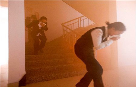該演練模擬了生活樓發(fā)生火災(zāi),員工一發(fā)現(xiàn)火情就立即撥打了報警電話。參加演練人員聽到警報聲后,迅速拿起打濕的毛巾捂住口鼻,手扶墻體或樓梯扶手,俯身低姿從三樓或二樓,向安全通道有序撤離。全體人員不一會就疏散到了安全地帶,同時連接好消防水帶,迅速跑至火源附近,對準(zhǔn)火源有效滅火。