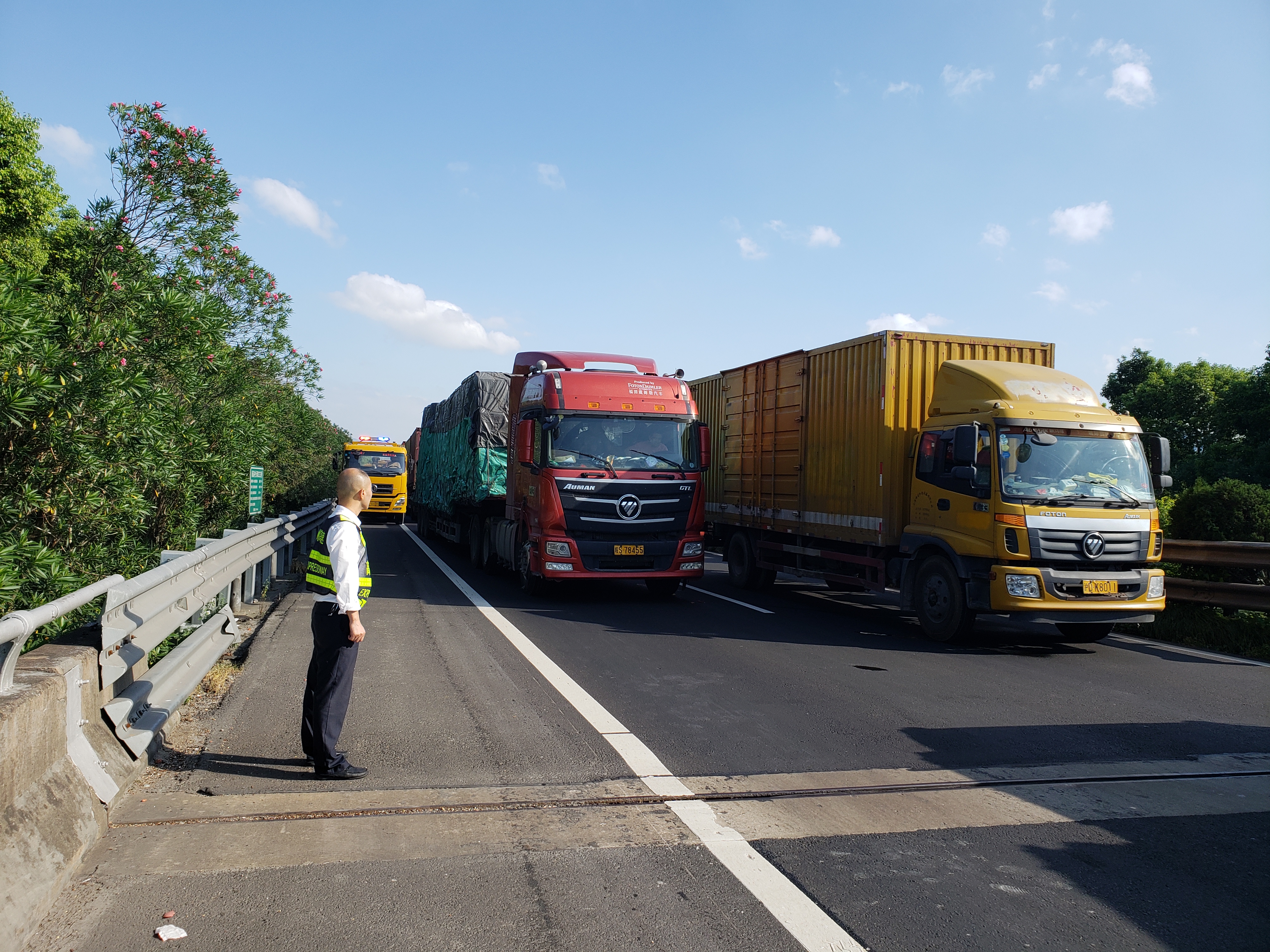 時間已經(jīng)過去了2個多小時,堵車達到了十多公里,盡管當天的駕駛員都極有素質(zhì),沒有占用硬路肩,但大型救援車僅僅硬路肩還是不夠,還需要占用一部分主車道。每到開不過去的地方,毛慶榮就下車指揮前后車輛往超車道靠。