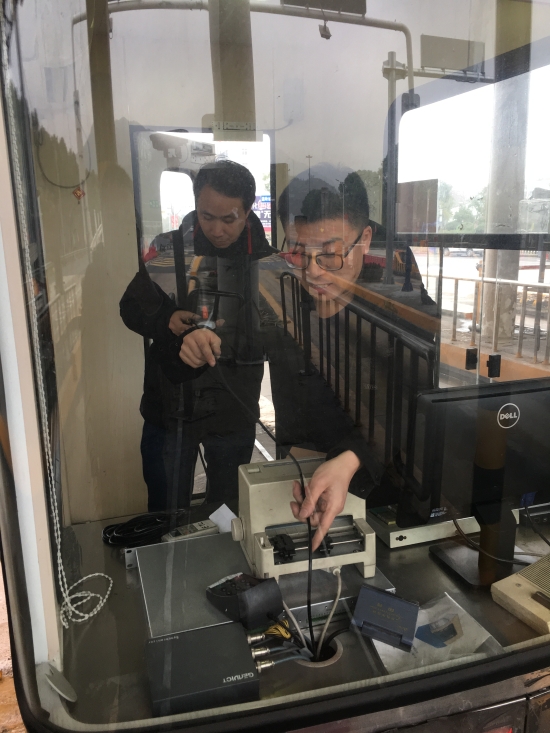 圖為工作人員在安裝手持OBU讀寫器 在得知這一情況后,工程部機電設備維養(yǎng)中心一開始想到了通過加大天線功率的方法來提高OBU讀寫成功率,不但收效甚微還造成了鄰道干擾,并將同信道的相鄰車道車輛OBU信息也一同讀取了,造成了數據混亂,增加了收費人員的工作量。 正在一籌莫展之際,中心負責人通過全省收費系統(tǒng)互助群了解到省內部分路段針對這一狀況啟用了手持式OBU讀寫器,在反響不錯后,中心人員立刻聯(lián)系了設備廠家訂購郵寄。 經過維護人員一天的安裝調試,手持式OBU讀寫器已成功接入到每個車道崗亭。這種新型手持讀寫器具有DSRC專用短程通信接口,可以識別車輛上OBU設備內特有的編碼,判別車型,寫入信息,計算通行費用,并自動從車輛用戶的專用帳戶中扣除通行費。當現有車道天線交易失敗時,收費人員便可用它對車輛OBU進行重新搜索并自動進行交易。 手持式OBU讀寫器的投入使用,彌補了現有車道OBU讀寫器的缺陷與不足,有效減少車輛擁堵現象的發(fā)生,便于收費人員現場靈活操作,提高收費站的通行效率。 項寅曉