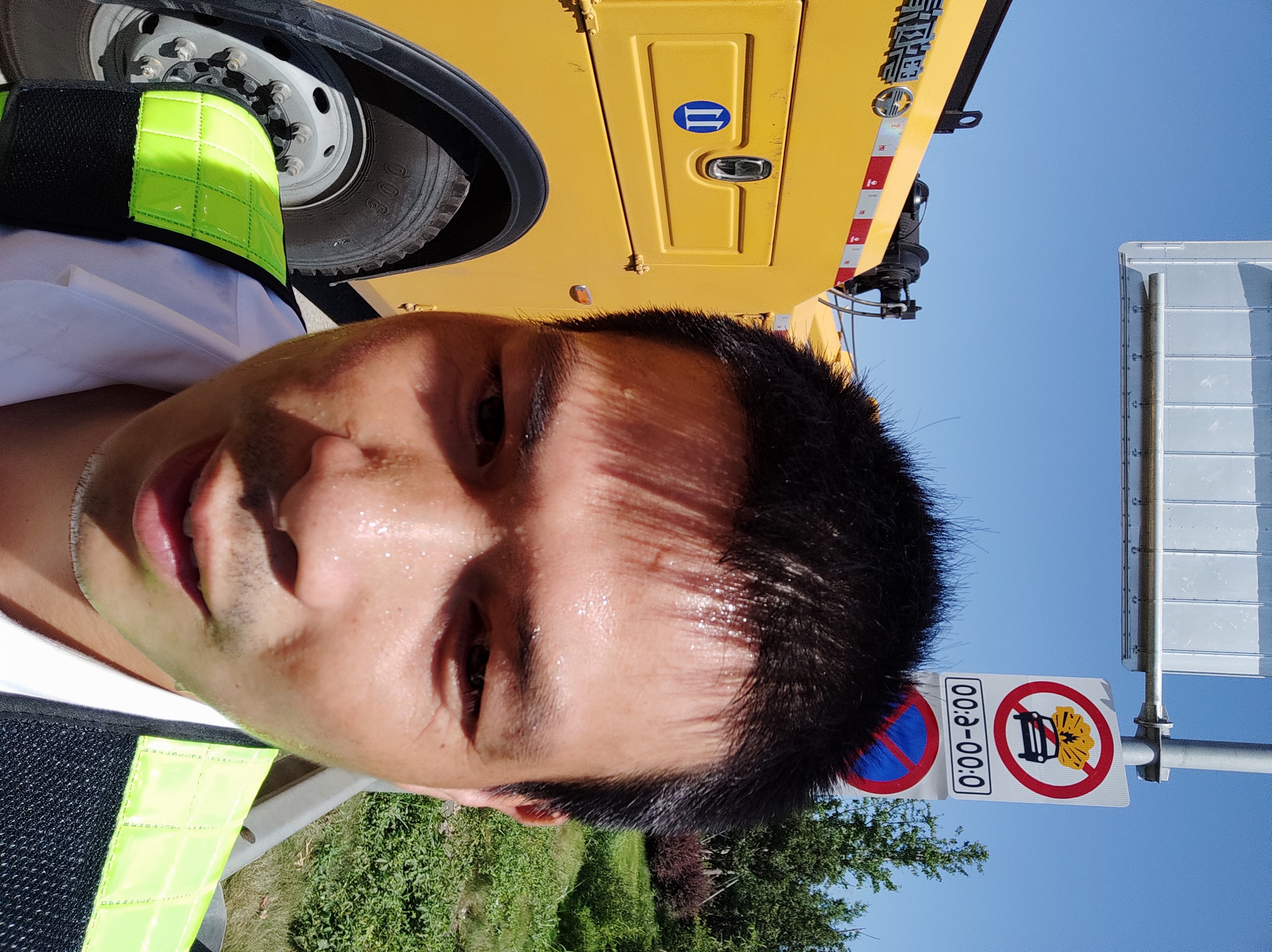 “這地面溫度已經(jīng)超過70℃了吧,滾釘燙!”為了擺正車叉位置,阮文標頂著酷暑爬到車底調(diào)整位置,爬出來的時候,手隔著手套都被燙紅了。