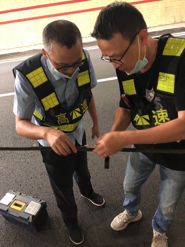 “馬鬃嶺寧向主車道電纜脫落!”執(zhí)勤隊(duì)立即趕赴現(xiàn)場拍照上傳,橋架變型,電纜脫落達(dá)150米,給過往車輛帶來嚴(yán)重的安全隱患。所長李海福意識到事情的緊急性,立即自駕趕到事故現(xiàn)場進(jìn)行布控,隨后聯(lián)系監(jiān)控中心及交警部門、維養(yǎng)中心,協(xié)調(diào)好臨時(shí)搶險(xiǎn)。