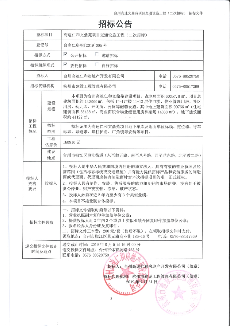 高速仁和文鼎苑項目交通設(shè)施工程招標公告