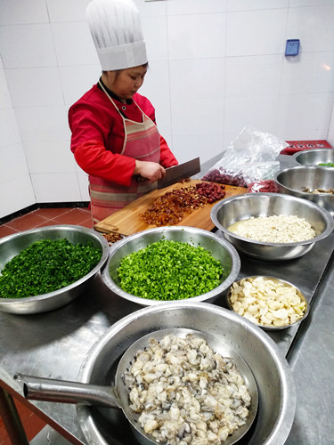 臺(tái)州的元宵節(jié)是從正月十四開(kāi)始的。十四吃咸羹、十五吃甜的山粉糊。下午兩點(diǎn),臺(tái)州所的食堂大姐們就開(kāi)始忙活了。 早在前幾天,來(lái)自臨海的食堂大姐利花,就開(kāi)始為臺(tái)州所的元宵節(jié)準(zhǔn)備食材清單。在她的家鄉(xiāng)四岔,咸的糟羹里是要放海蠣的,她說(shuō)一到正月十四,滿(mǎn)街都會(huì)有剛從牡蠣殼里現(xiàn)挑出來(lái)閃著新鮮青色的海蠣肉賣(mài),但在黃巖,找遍菜場(chǎng),只有冰凍的泛著白光的海蠣肉,也不是每天都有賣(mài),有時(shí)還要靠運(yùn)氣才能買(mǎi)到。利花有些無(wú)奈,她想,都是離海不遠(yuǎn)的地方,為什么就沒(méi)有新鮮的海蠣?她也許不知道,在黃巖一帶,大家還是喜歡吃甜的山粉糊,所以不需要海蠣。