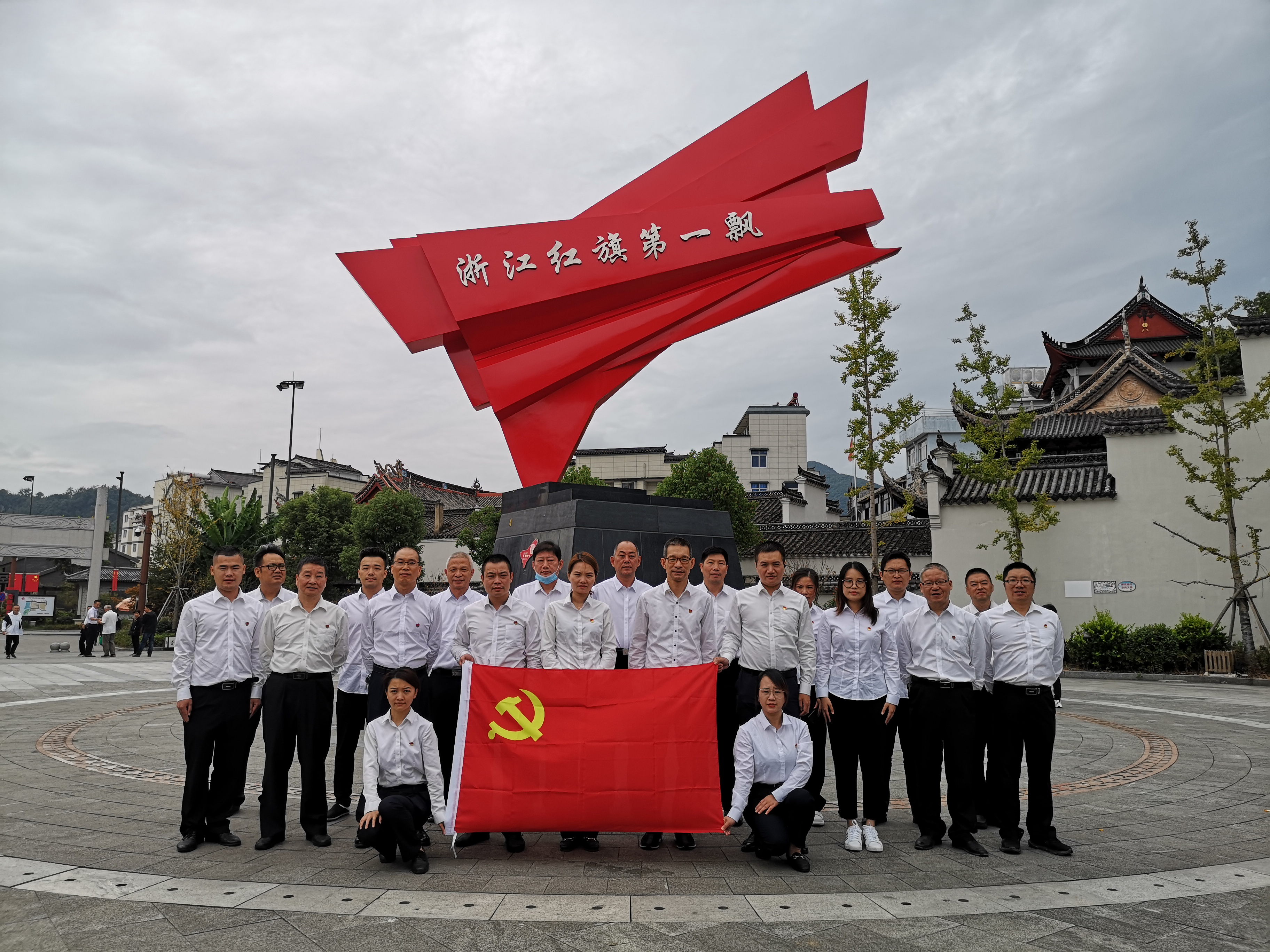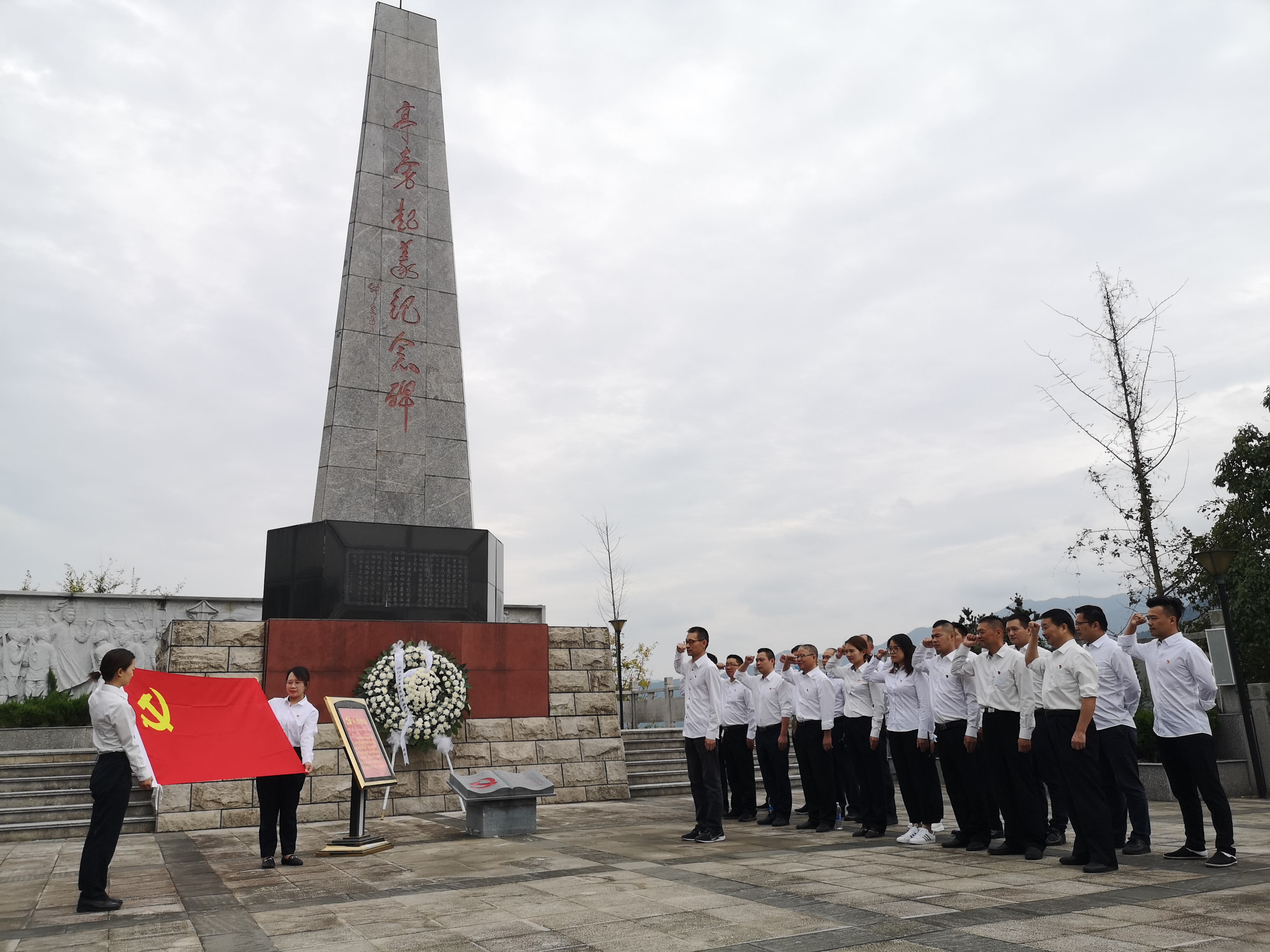 (圖為紀(jì)念碑黨員合影)