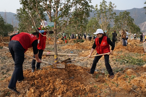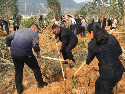 圖為植樹現(xiàn)場 3月13日上午,臺州高速房產(chǎn)黨支部開展“守護青山碧水”主題黨日活動,組織黨員干部到黃巖“兩山”綠色基地(江心嶼苗圃公園)植樹,為臺州大地再添新綠。