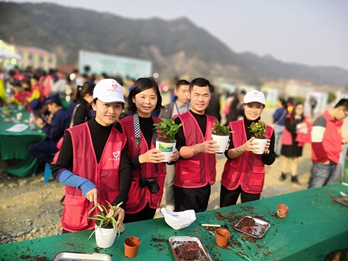 圖為臺州市青年志愿者協(xié)會成立大會現(xiàn)場 當(dāng)天是一年一度的植樹節(jié),公司還組織各部門、收費所共20多名青年志愿者乘車前往路橋飛龍湖,參加由共青團臺州市委組織的以“擁抱灣區(qū) 青春力量”為主題的青少年植綠護水活動。