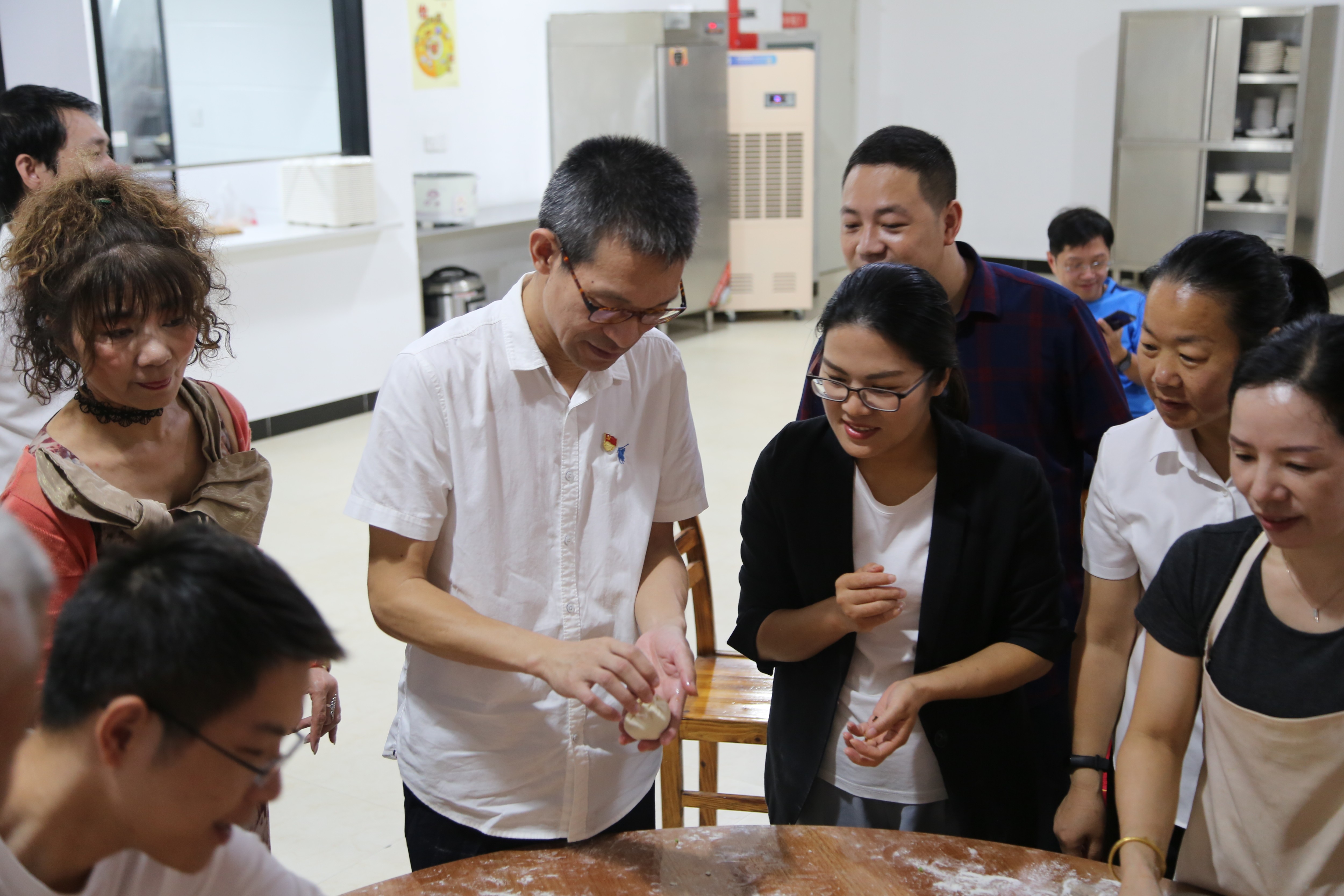 “如何發(fā)酵面團(tuán)?如何搟包子皮?如何捏成漂亮的形狀?”玖璽逸墅展廳食堂工作人員為大家一一講授了制作包子的要領(lǐng),大家紛紛洗凈雙手,擼起袖子,躍躍欲試,和面、拌餡、搟皮、包包子,分工有序,互幫互助,猶如一個(gè)溫馨融洽的大家庭,新老員工在活動(dòng)中加強(qiáng)了交流,加深厚情誼,為今后更好的團(tuán)隊(duì)合作打下了基礎(chǔ)。