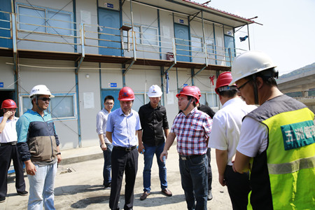 圖為集團(tuán)副董事長、總經(jīng)理張建平檢查內(nèi)環(huán)路8#立交民工生活區(qū)