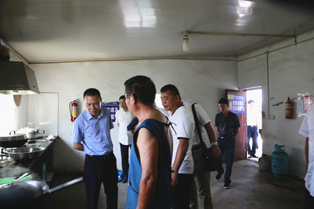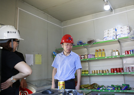 圖為集團(tuán)副董事長、總經(jīng)理張建平檢查內(nèi)環(huán)北路(江口段)民工食堂