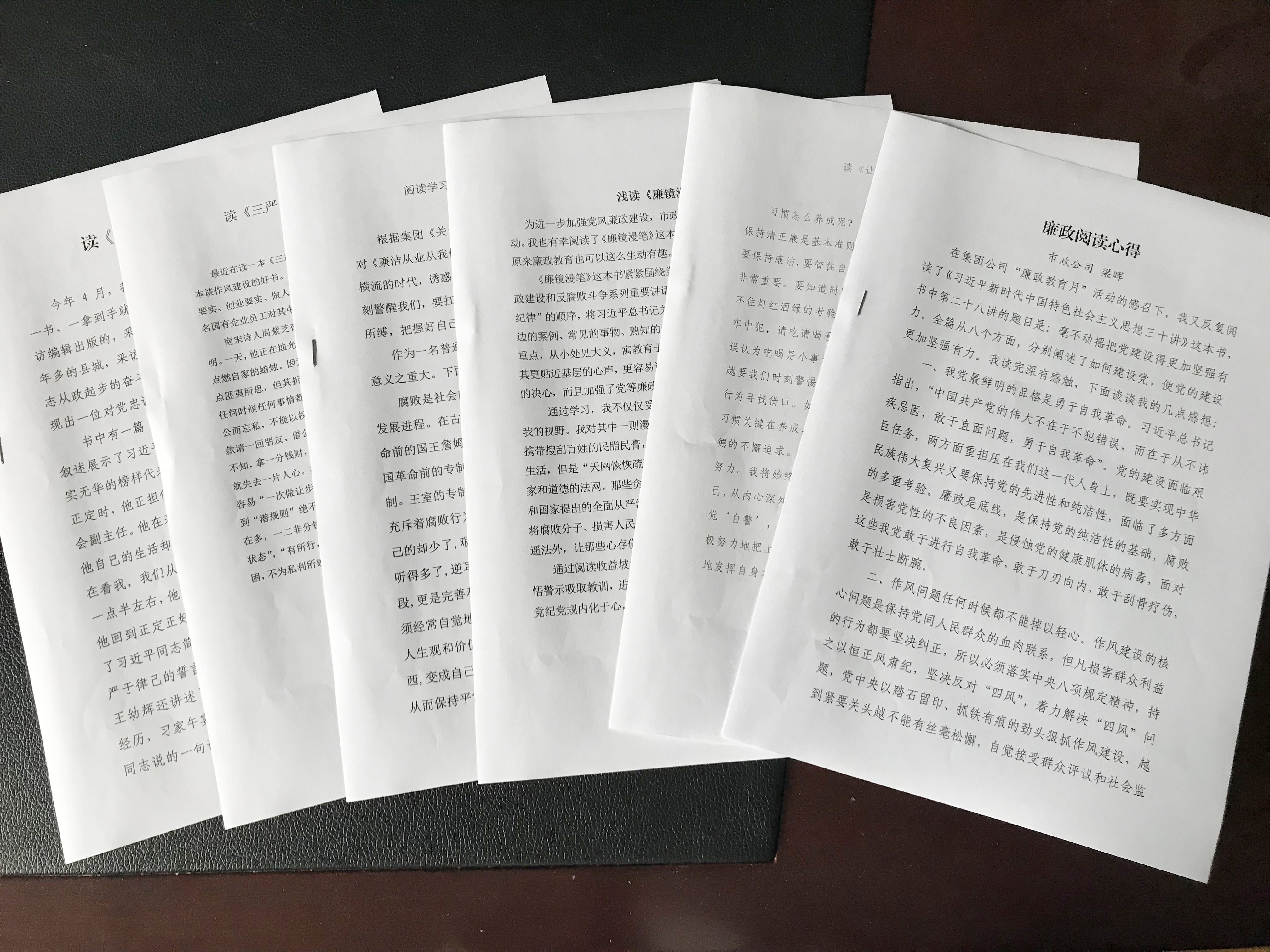 圖為勤政廉政讀書心得 早在年初,市政公司每一位員工簽訂了《廉潔履職個(gè)人承諾書》,這個(gè)月新到的兩名員工剛進(jìn)公司第一天即簽訂了這份承諾書。